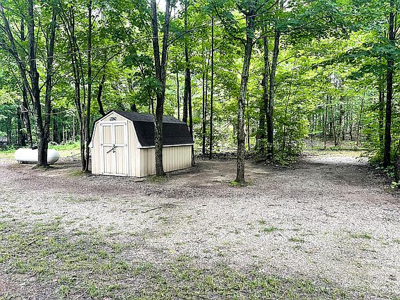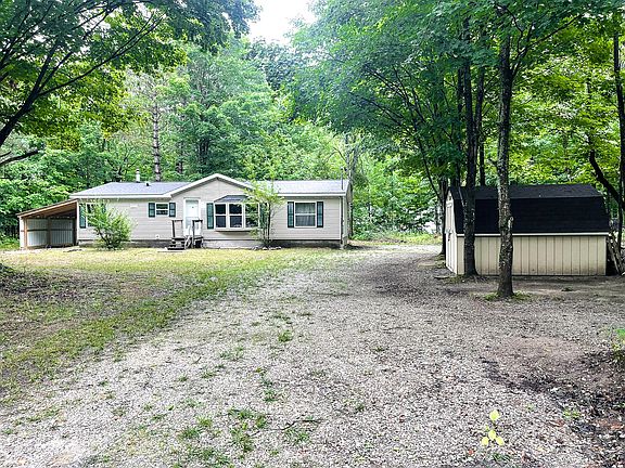 CASH ONLY. PROPERTY BEING SOLD AS IS. SELLER WILL NOT NEGOTIATE REPAIRS. This 3 bedroom, 2 bath home sits on a double lot in Lakes of the North. Features include two driveways, each with a lean-to parking structure, plus a storage shed. Association amenities include an 18-hole golf course, restaurant/tavern, airport, clubhouse with pool and water slide, beaches, tennis and pickleball courts, and ATV/snowmobile trails. Winter options include cross-country ski and snowshoe trails and an ice rink. Don't miss your chance to make this investment yours. Bring your plans and reimagine this home in one of Northern Michigan's most versatile associations.