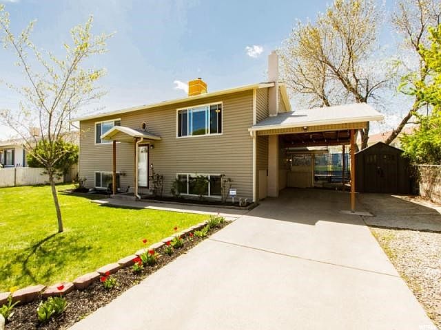 Stunning updated home in friendly neighborhood located two houses from elementary school. 3-toned paint. Crown mouldings & neutral tones throughout this well thought-out floor plan. Large kitchen with stainless steel Whirlpool appliances and white cabinetry with large island. Large family room with view. Spacious formal dining area and quaint breakfast nook. Large bedrooms & master with dual closets. Lower-level family room plumbed for wood stove/fireplace. Exterior entrance in lower-level. Laundry/utility room with shelves. 2016 water heater & 2009 furnace. Lower-level walk-out. 2nd bath w/ tile shower/tub. Exterior features include: Fully fenced yard, Carport, Outdoor Lighting, Deck, 2 Sheds, Fruit Tree, Garden Boxes, Smart Watering System-wifi enabled, Qualified buyers are invited to tour this move-in ready home.