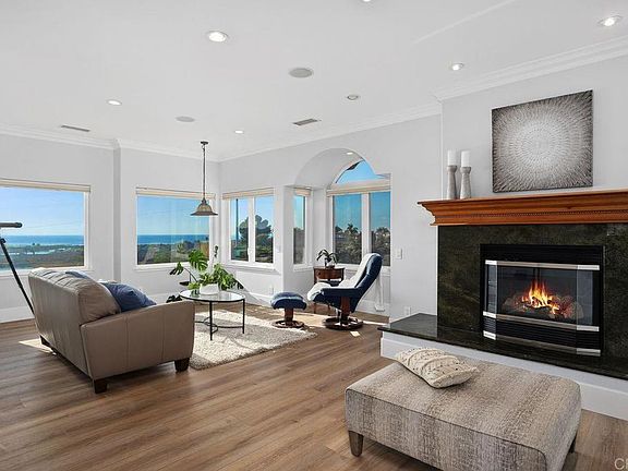 Extraordinary ocean, shoreline and lagoon views from this advantageously-perched custom home! The recently renovated kitchen and living areas offer stunning water views from almost every room. The reverse floor plan maximizes the beautiful surroundings and offers four bedrooms, an office, approximately 4,335 sf., and an elevator! Enjoy new flooring throughout the living areas and bedrooms, large picture windows, and multiple skylights that bring in natural light. This energy-efficient home has owned solar, low maintenance landscaping, a large patio, multiple decks, and an oversized two-car garage. The recently renovated kitchen in coastal hues, has a large waterfall edge island that seats eight, stainless Wolf appliances, Sub Zero refrigerator, hidden walk-in pantry, and beautiful wet bar. Ideally located west of the 5, beach close, and across from nature trails that lead to the beach and lagoon. Conveniently close to shopping and restaurants, and within the Carlsbad School District. The Rosalena community offers a pool, spa, and barbecue area. This incredible setting overlooking Ponto Beach and the Batiquitos Lagoon is a rare and truly special find!