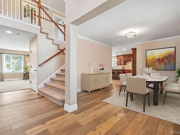 Fabulous updated home in the heart of Carriage Club Estates! Nothing has been overlooked in this impressive one owner home. The main floor features wide plank engineered hardwoods and a formal dining room off of the foyer. A large sunny living room greats you upon entry - currently being used as a billiards room, this space could also be the perfect spot for a music room or a stately sitting area. The remodeled and open gourmet kitchen really highlights this home featuring high end stainless appliances, 5 burner cooktop, a massive kitchen island with 2 1/2" thick granite counters , custom 42" cherry cabinetry with glass doors, crown molding + deep drawers. The family room off of the kitchen has a cozy fireplace & custom built-ins. The laundry room/mud room off the garage entrance includes the washer/dryer, a custom cubby + a closet. A convenient main floor bedroom and full bathroom is perfect for guests or parents. Dual staircases lead you up to the dreamy primary retreat w/vaulted ceilings. The luxurious ensuite bathroom feels like you are at the finest hotel boasting travertine tile, marble counters, dual sinks, a huge shower and walk in closet. Three more spacious bedrooms on the upper. A full bathroom for two of the bedrooms and the third bedroom has it's own private full bathroom. Enjoy the upstairs loft for some quiet reading or studying. A bonus room over the garage has an impressive stone fireplace, vaulted ceilings and hardwoods. The quiet backyard has mature trees and a serene paver patio. The unfinished basement has plenty of storage and the utility room. Dual furnaces/ac systems, 75 gallon water heater. 3 car immaculate garage w/ electric vehicle charging station. Newer windows/flooring/trim/appliances/doors. Walk to multiple parks, playgrounds, Bluffs Regional Park & miles of trails! Easy Access to I-25, Light Rail, Park Meadows, SkyRidge Medical Center, Charles Schwab Campus, Lone Tree Recreation Center, DTC & Downtown Denver.