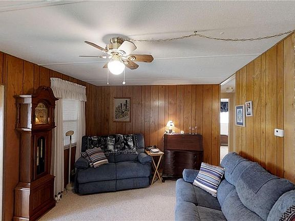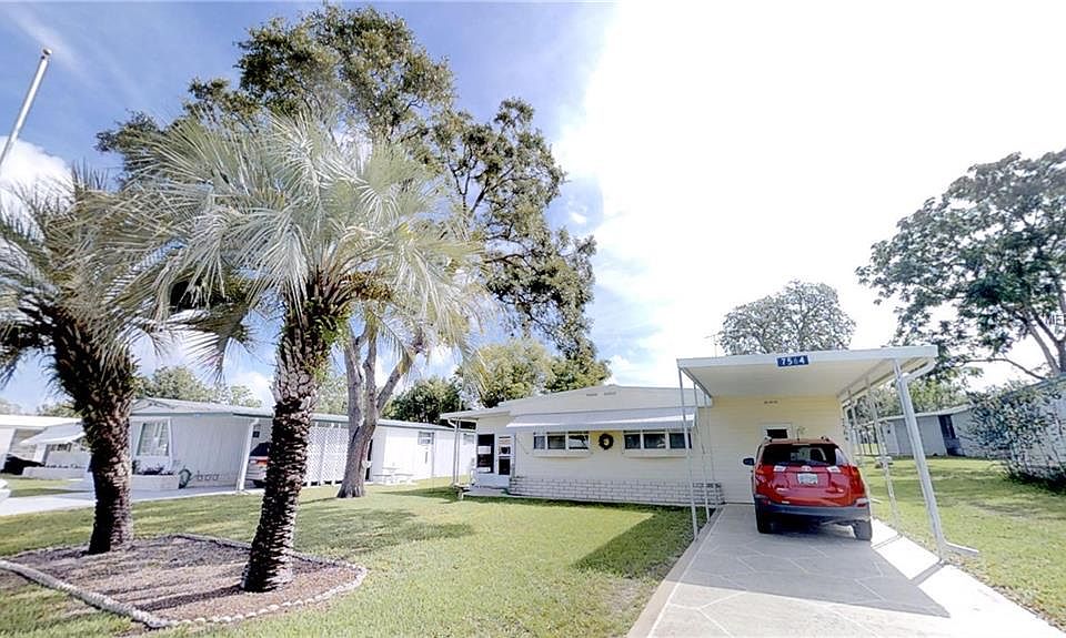This beautiful 2-bedroom, 1 bathroom, impeccably well maintained home. Enjoy a meal on the screened patio or tinker in the oversized utility room located at the back end of the carport or park you golf cart. This home is move in ready. Located in the High Point 55+ manufactured home community. This home has many extras, ceiling fans throughout, laminate flooring in kitchen, Hurricane Shutters, Acrylic windows in screen room, separate enclosed golf cart garage or can be used for storage or work room with a work bench, enclosed utility room. Plenty of storage. Only a short ride away from all of the area's major attractions. The community is ideal for active seniors. Choose from a game of golf, tennis, shuffleboard, cards, or take a swim in the beautiful solar heated pool. High Point is centrally located on the Nature Coast of Florida within a 45-minute drive of Tampa Airport and only 10 minutes from Pine Island Owner has requested no showings after 4pm