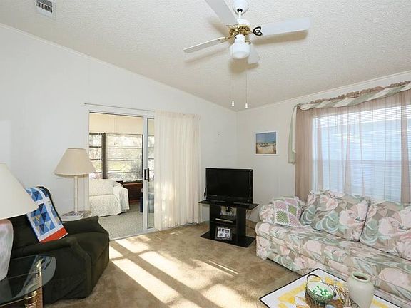 Attractive furnished home in the heart of Snug Harbor Lakes. Comfortable front glass enclosed porch comes with carpet and blinds. Interior bonus room includes washer and dryer. Great room makes for ease when entertaining friends and family. Master suite runs full width of the home.