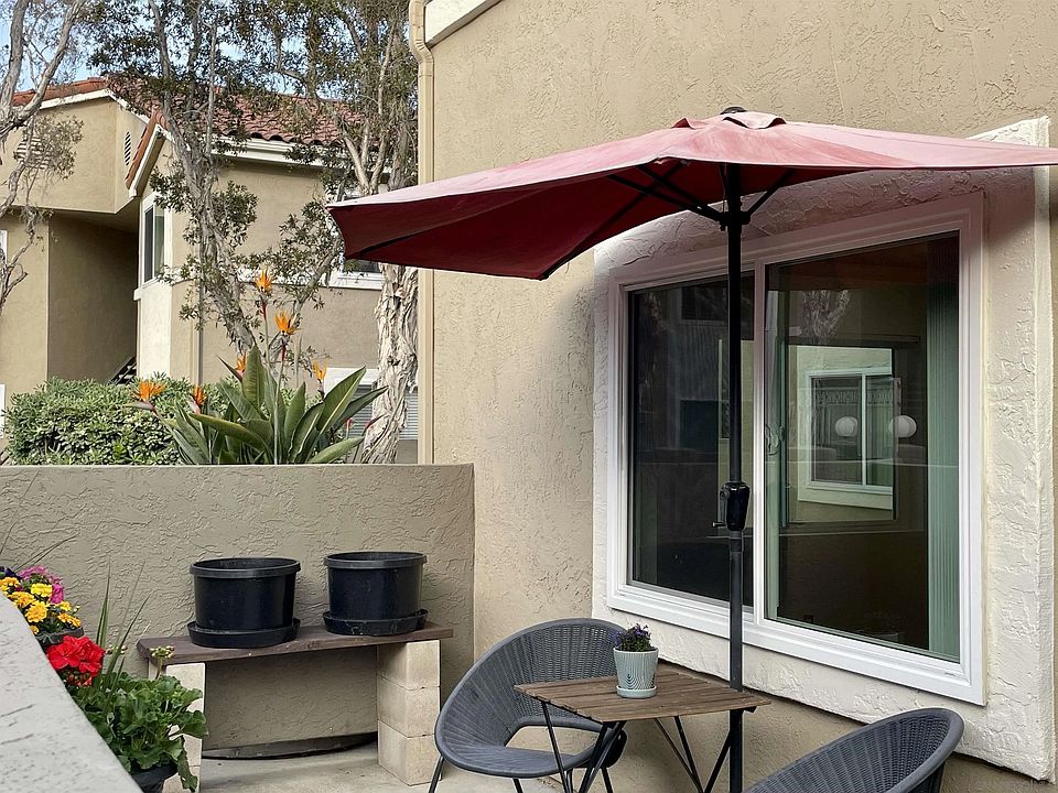 Absolutely adorable! One of the best unit within the complex. Located in the golden triangle of UTC, this first floor corner unit offers soothing central greenery view, very quiet, natural light throughout, double pane windows, beautifully updated shower bathroom, flooring and kitchen. In unit stackable laundry. Walk-in closet. It has one of the largest private balconies of the community. Verano complex is near the bus stops that ride to UCSD, close to UTC fashion mall and the Blue line trolley transit center as well as freeways. The community offers a Pool, jacuzzi, and fitness center.
