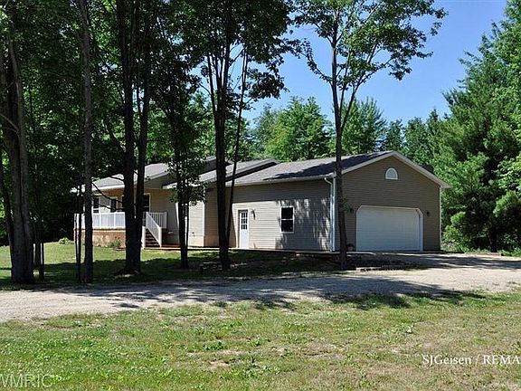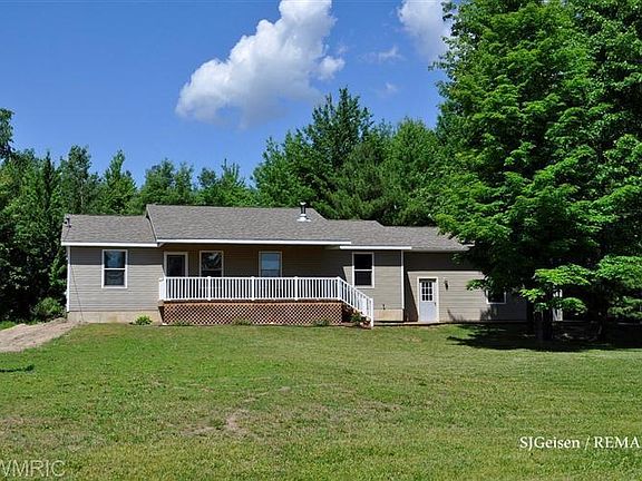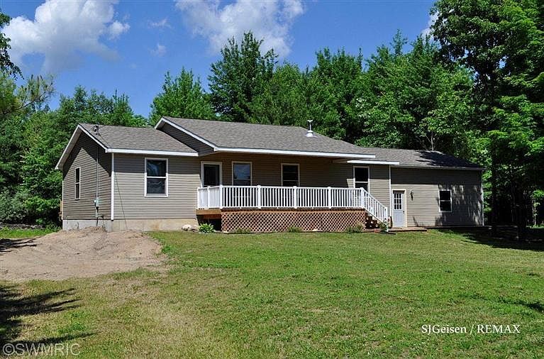 Just 3 years new and located on a wooded 10 acre parcel that is a 5 minute drive (2.4 miles) to the public boat launch of all sports Long Lake with 100 of acres of state game area very close by is this 3 bedroom, 2 bath, 1440sq' ranch home. The cantilevered porch welcomes you to the front door leading into the 24x30 great room hosting the living area with corner wood stove open into the dining area with sliders to 12x26 rear deck and attractive kitchen with center island/snack bar, 3/4 birch wood flooring and gloss black appliance package. Master bedroom includes a beautiful private bath with ceramic tile double head shower. Daylight basement is wired and drywalled - prepped for a family room and 1 or 2 additional bedrooms - needs floor covering, ceiling and trimmed out for a quick extra 1,000 sq'. Additional amenities: main floor laundry/mud room, 2x6 wall construction, 26x28 attached garage with 12' ceiling, tankless water heater system plus water softener and 200 amp electric.