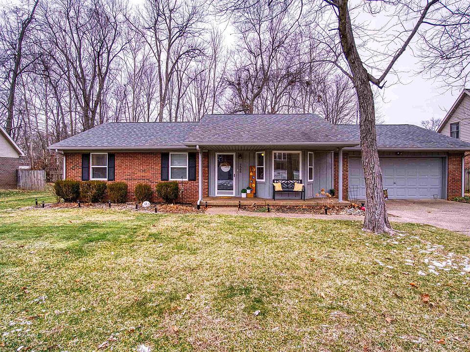 Looking for a move-in ready 3 bedroom 2 full bathroom house on the north side of Newburgh? Then welcome home to 7566 Jeremy Lane! With all neutral finishes throughout (plus a few tasteful accents), this full-brick ranch features a welcoming covered front porch; great room with beautiful bay window--allowing in tons of natural light, a spacious eat-in kitchen with an abundance of cabinets and gorgeous newer quartz countertops; owner's suite with a walk-in closet and private full bathroom, and two additional nicely sized bedrooms adjacent to the full bathroom in the hallway. Enjoy the outdoors under the shade trees, on the patio in your privacy-fenced backyard. Back inside, the oversized laundry room leads into the attached 2 car garage, where you will find plenty of parking and storage space. Both the furnace and air conditioner were new in 2021 per seller. Don't miss out on your change to call this adorable house "home"!