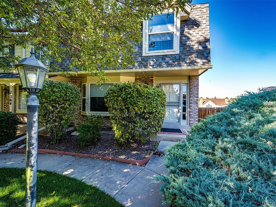 Located in Bristol Cove, a nice quiet enclave, this 2 story town home has a living room with a wood burning fireplace and a pass through to the kitchen. The eat-in kitchen has an island, cooktop with range hood, microwave, dishwasher and refrigerator. There's a large pantry and access to the deck. Upstairs is the primary suite with 2 closets and ensuite 5 piece bathroom with dual sinks and a custom shower. Also up are two more bedrooms and a full bath. All 3 bedrooms have ceiling fans. Clothes washer and dryer stay and are located in the 700+ SF unfinished basement. The 2 car detached garage includes a workbench. Close to schools, shopping and South Suburban Sports Complex and Golf Course. Easy acces to C470.