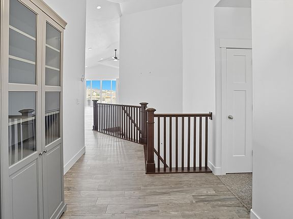 Discover this stunning 5-bedroom, 3-bathroom home in Herriman, featuring soaring 9' ceilings and a vaulted oversized great room that spans both levels. The spacious layout includes a large deck accessible from the master suite and great room with a 12 foot Slider, perfect for outdoor entertaining. The walkout basement offers a separate entrance, framing, and roughed-in plumbing for a future kitchen and laundry, with two rooms ready for texture and carpet-ideal for a rental or guest suite. Enjoy panoramic valley and mountain views from the deck and large patio beneath. The south-facing home reduces snow removal and includes an RV pad, a three-car garage with an extra-long third bay, upgraded knotty alder cabinets, porcelain tile in common areas, and an EPA-approved wood stove for red days. Central A/C, fully fenced yard with gates, and a spacious basement make this a versatile, move-in-ready property.