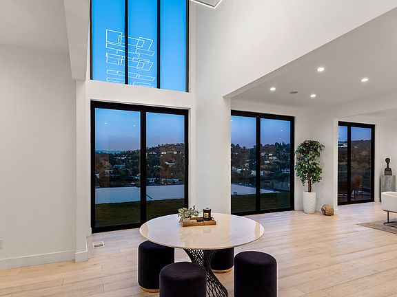 Available fully furnished and turnkey for short, midterm, or long term lease! Located in the heart of Hollywood Hills on a quiet street in the exclusive Mt. Olympus neighborhood. Just minutes away from sunset strip, this newly built luxurious modern masterpiece is the perfect dream home. Whether you seek thrills of Hollywood or prefer a quiet night at home w/ stunning views, this setting allows for access to all types of enjoyment and relaxation. Luxurious front entry pivot door opens to a bright open floor plan w/ hardwood floors & floor-to-ceiling Fleetwood glass leading to enormous 2,000 sq. ft. deck w/ jaw dropping zero-edge infinity pool/spa floating into the canyon. Perfect for indoor-outdoor entertainment w/ surround sound throughout the home. Master chef's kitchen, huge marble kitchen island, top-of-the-line appliances & Custom cabinetry from Italy. Home offers four bedrooms upstairs plus movie theater & sauna downstairs. Master suite features romantic fireplace, private deck, Spa like master bath & enormous dual walk-in closet. Canyon views from every room.