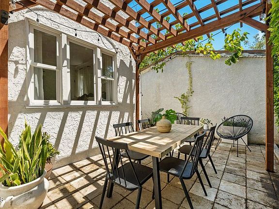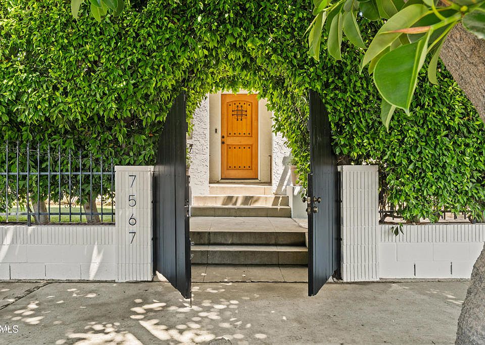 Private Spanish Bungalow with ADU plans in the final stages of city approval! Set in a vibrant pocket of Melrose Village with easy access to everyday essentials, neighborhood cafes, curated boutiques, and Pan Pacific Park, this charming one-story home is tucked behind a canopy of mature Magnolia trees, privacy hedges, and a gated entrance. It offers timeless character and celebrates its 100th year in LA. Since purchasing in 2021, the current owners have made beneficial improvements, including a fully renovated bathroom and the addition of central heating and air conditioning, enhancing both comfort and long-term value. The shaded porch opens to a sunlit living room with refinished hardwood floors and a 1920s Batchelder tile fireplace surround, with coved ceilings adding timeless architectural charm. The updated kitchen features modern cabinetry and finishes and flows into the dining area, where fixed-glass sidelights let in natural light while subtly defining the space and creating an ideal setting for gatherings.Two similarly sized bedrooms share a renovated full bathroom. Just off the front porch, an inviting front patio offers a peaceful spot for alfresco dining or morning coffee. The detached garage is currently used as a studio with a full bath and laundry, offering endless possibilities from a home office to a creative retreat. Design plans for a 2-story, 2-bedroom, 1-bathroom ADU (approximately 698 sq ft) with an outdoor patio have been submitted to the City of LA and are in the final stages of permit approval. Full plans are available for review. This is a fantastic opportunity to either move in and enjoy the home as it is, take advantage of the near-complete ADU process to maximize income potential, or create a private multi-generational compound with additional space and privacy. A truly special property that combines charm, style, and opportunity in one of Los Angeles' most desirable and historically rich neighborhoods. The Grove, Erewhon, Melrose, Fairfax, and Beverly are just minutes away, along with the open green space, sports courts, and community amenities of Pan Pacific Park. Experience a vibrant lifestyle in the heart of the city!