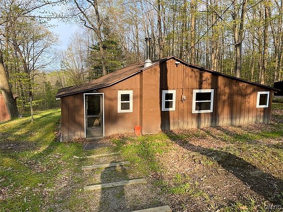 This 2 bedroom cabin on 1.7 acres in located in Belfast NY. The renovated cabin has knotty pine walls and ceilings throughout, new appliances, granite counter tops, engineered hardwood floors, 2 spacious bedrooms, a full bath with a tiled shower, and a large mudroom. There is a sliding glass door that leads from the kitchen to a large deck, perfect for relaxing or entertaining guests. The cabin is nestled in and around a stand of hardwood trees. Very quiet area. The property has 2 road frontages which are maintained year-round.