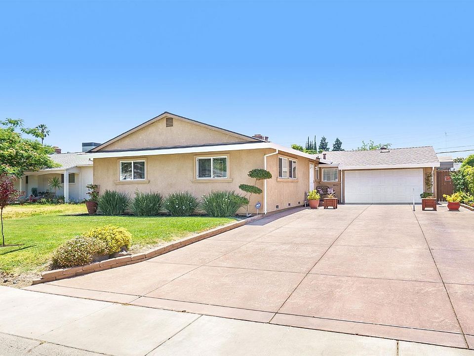This delightful single-story home with great curb appeal boasts an abundance of natural light throughout. The spacious living room and inviting sunroom offer views of the back yard and garden. Inside, the home features a thoughtfully designed layout with a highly functional floor plan, including a kitchen that maximizes both space and convenience. Step outside to a lovely patio area, enclosed by elegant wrought iron fences, perfect for outdoor relaxation and entertaining. The property includes two work sheds, with a generous overhangs ideal for various projects. An updated driveway provides ample parking space. Centrally located, this home is within walking distance to schools and parks, minutes to Kaiser, and provides quick access to the highway for an easy commute. This home has been meticulously maintained. Welcome home!