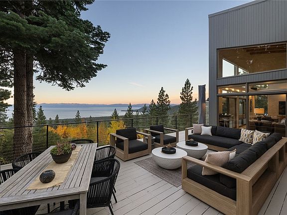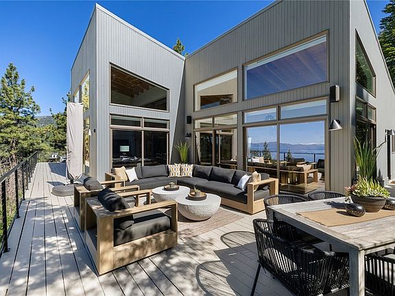 Remarkable estate with panoramic lake views and situated on over a one-acre parcel. This private, gated lake view estate offers a contemporary flare with clean lines and walls of glass to take in the breathtaking views. Expansive living areas featuring cathedral beamed ceilings and south-facing decks are perfect for entertaining friends and family, and enjoying the stunning sunrise and sunsets of Lake Tahoe. Primary suite is located on the main living level while separate family room, three guest suites and office are located on the middle level. Luxurious amenities include a wellness and fitness center with indoor pool, spa, dry and wet sauna, hair salon and gym which are located on the lower level with access to the sprawling park-like grounds. Also, the lower level has media/entertainment with separate game room and an additional bedroom.This incredible estate is ready to enjoy and extensive remodel plans are included for someone to make their own Tahoe dream a reality.