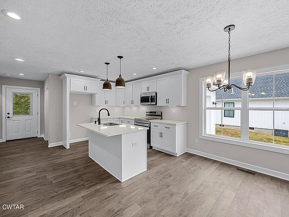 This charming new construction offers modern farmhouse appeal with clean lines and timeless details. The white board-and-batten style vinyl siding exterior is complemented by a welcoming front porch, complete with a ceiling fan for comfort, the covered back porch gives peaceful vibes for your morning coffee or tea. Inside, you'll find a thoughtfully designed floor plan filled with natural light. The attached garage, spacious driveway, and freshly landscaped front yard add convenience and curb appeal. Perfectly blending style and function with 3 bedrooms and two full bathrooms all on a single level, this home is move-in ready for its first owners.