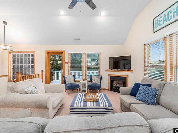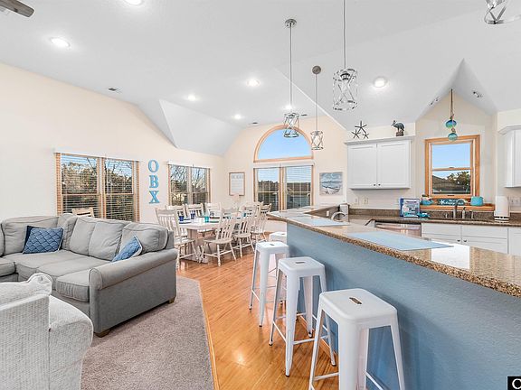You will find this OBX gem nestled in the shadows of shade trees, and tucked in a cul-de-sac, offering uncommon privacy for its location. This lovely home welcomes you right from the start, setting the vibe with its sunny yellow exterior. Inside find open and spacious rooms, high ceilings and plenty of windows to bring the outside in. An expansive dining space seating eight with additional seating at the wrap-around bar, makes room for all your guests, as does the five spacious bedrooms which are able to sleep 13 comfortably. And prepare those delicious meals in the modern kitchen featuring stainless appliances, solid surface countertops and an extra prep/bar sink. Decorated in tranquil shades of soothing water, soft sand, and frothy white wave caps, you are pulled into the captivating and relaxing ambiance. Add the cozy seating and gas fireplace for those chilly or rainy days and you are set for whatever mother nature throws at you. Spend time outside on any of the gracious shaded or sun decks, upgraded with Trex planking, and enjoy outdoor dining, playing games, reading, napping or soaking up some of that NC sun. Want to cool off, take a dip in the private pool or end the evening with your favorite beverage and a soak in the hot tub while others take advantage of the game room. Just a few blocks from Ocean Sands beach, a short jaunt to shopping and eateries, and close to Carova with wild horses, beach tours and 4WD access, this home is sure to accommodate whatever you can imagine. Plus, it is an established rental property making you revenue from the start. What is not to love about this prime piece of property situated in our beautiful Corolla, NC. Make the Saltwater 2 your dream come true.