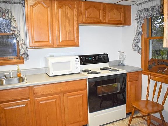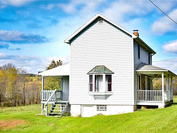 Fabulous restored Farmhouse on 54.37 acres! 2 bedrooms, 1 full bath, 2 car detached garage and move-in ready! Many quality recent updates include newer windows, roof, furnace, updated bathroom, updated electrical, solid oak kitchen cabinets, rarely used appliances all stay with home too. Block windows installed in the basement, wonderful setting and property! Well Water and septic service the home. This home has been in the same family for many many years and is ready for a new owner to enjoy and make wonderful memories here as they have!
