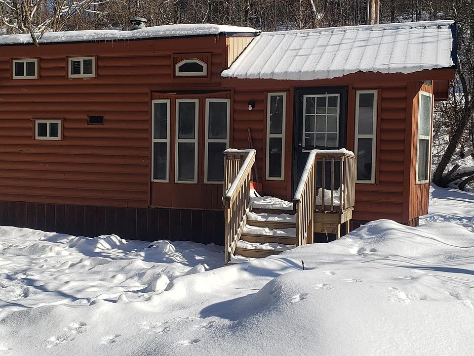 It's tough to believe a tiny house can feel so spacious, but with high ceilings, huge windows and a waterfall view, this one checks all the boxes. Nestled in the foothills of the Catskills, this cozy 400 sq ft tiny log cabin style home is big on charm and comfort. You hear the soothing sound of the brook as soon as you step onto the property. Outside the front door you have your own private waterfall and 100' brook frontage. You even have your own swimming and trout fishing hole! It comes furnished with reclining furniture, a queen bed, and new appliances. There's an upstairs loft for even more added space. $875 a month plus utilities. Enjoy the beauty of our tiny home! Call or text for more information