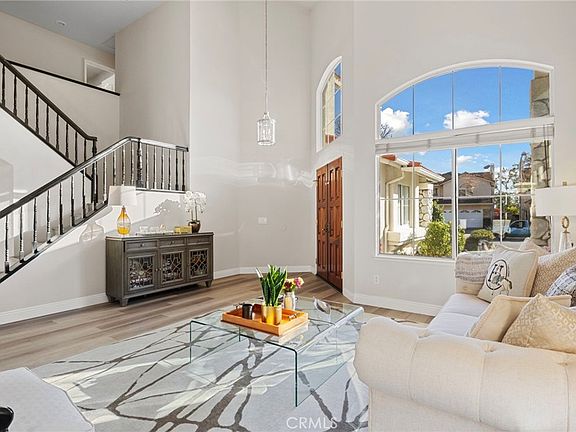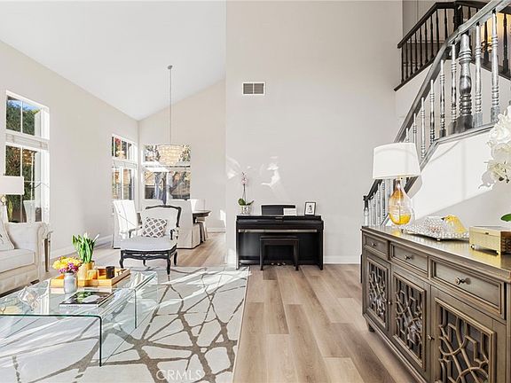 Welcome to this beautiful four-bedroom three-bathroom home, nestled in the heart of Brea. As you step inside, you will immediately notice the new flooring and neutral paint colors, creating a warm and inviting atmosphere. Natural lights floods the living and dining room through the abundance of windows. The kitchen is a a true culinary delight, featuring sleek white cabinets and stunning back splash. Adjacent to the kitchen is the cozy living room, complete with a fireplace where you can unwind and enjoy a show. Down the hall, you will find a conveniently located bedroom and bathroom, as well as an indoor laundry room. Upstairs, the main bedroom awaits, offering a true retreat with its spacious layout, two closets including a walk-in closet in the bathroom. Not to mention the separate shower and tub and double vanity in the main bathroom. Additionally, there are two more bedrooms upstairs that share a bathroom. This home offers a lot of other features including; Large Patio cover in the back yard, Epoxy flooring in three car garage, updated light fixtures throughout the house, and shutters in all bedrooms upstairs.