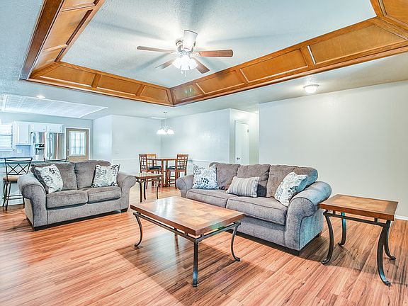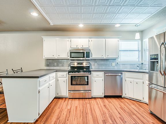 Gorgeous Open floor plan with New laminate wood flooring throughout living, kitchen, and hallways. Appliances are new along with new light fixtures as well! Added sliding bar door to master bath! New Roof 2017. Very clean home in Yukon School District! Close to the turnpike and right around the corner from a community Splash Pad. This is a must see!!