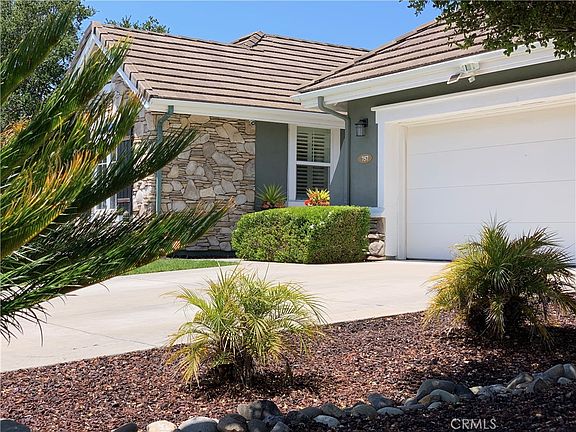 Move in ready at it's best! 2005 built home that has so many fantastic upgrades & features inside & out. This spacious home has 4 bedrooms plus a bonus room, 3 full bathrooms, large family room & living room & a chef's delight kitchen. Vaulted ceiling in most rooms. At approx 3,100 sq ft this is the largest single story plan in The Bluffs. Split floor plan with 2 bedrooms in front & 2 bedrooms & bonus room on back side. Inside boasts engineered hardwood floors & travertine tile throughout main rooms. Shutter style window coverings on most windows. Built-in home theater surround sound system in family room. Beautifully upgraded primary bathroom includes a free-standing tub. Large granite top kitchen island which seats up to 6 people. Kitchen also has all matching black stainless appliances & includes double ovens, 5 burner gas stove top & a walk-in pantry. Laundry room has counter space, cabinets & sink. Outside boasts a custom-built BBQ station with tile counters, built in gas BBQ & cooler & a bar that can seat several people. Other great areas for entertaining includes a gazebo sitting area, large concrete patio, grassy side yard & a hot tub/spa to relax in. Fully owned solar system installed in 2023 includes 29 panels in 2 groups, front & back side. Series 3 Tesla charging station installed in garage. Owned soft water system & RO system at kitchen sink. Car wash hose hook-up to soft water added. This home definitely has the "WOW" factor!