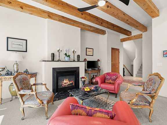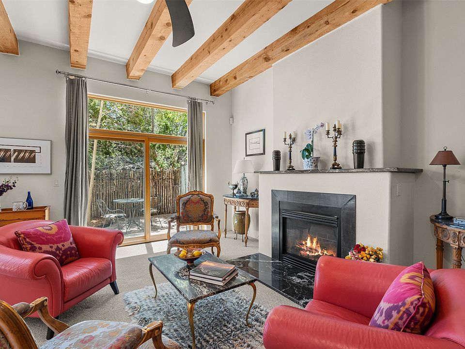 Northside 3-bedroom, 2.5-bath condominium offering captivating views and a thoughtfully designed multi-level layout. The first level features a two-car garage, mechanical room, and generous storage options. Move up to the second level, where the living area includes a welcoming fireplace, providing a focal point for relaxation. The open living room and kitchen design encourages easy interaction, complemented by a convenient half bath. Enjoy access to a private patio and outdoor area, perfect for unwinding or entertaining. On the third level, discover a guest bedroom, a laundry area, an office, and a full bath. A balcony enhances this level, offering an additional outdoor retreat. The primary suite occupies the fourth level, serving as a tranquil getaway. Recent updates add to this home’s charm, featuring upgraded fireplace with granite, modern lighting, ceiling fans, and practical shelving. The addition of flagstone and aspen trees enhances the outdoor environment, creating a serene atmosphere. Conveniently located, this condo is just moments away from the DeVargas Center, Frank Ortiz Dog Park, Ft. Marcy Recreation Center, and the Historic Santa Fe Plaza.