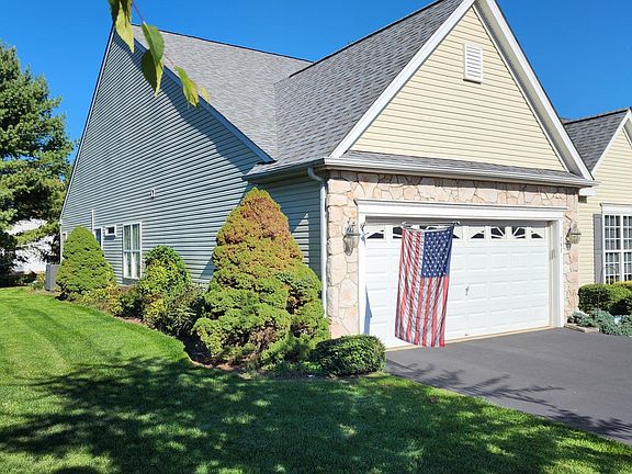 Here is your opportunity to own the Radnor model on a great premium perimeter lot in the highly desirable Traditions at Skippack active adult community. As you enter the bright two story foyer, the neutral decor throughout the home, featuring warm colors and light carpeting, provides a very welcoming and cheerful atmosphere. The entrance foyer has classic hardwood flooring and opens to a spacious dining and living room area . The classic hardwood hallway flows seamlessly into the bright kitchen and the carpeted family room. The inviting kitchen features white cabinetry, complimenting onyx granite countertops, and a convenient peninsula island, providing additional surface space for entertaining or for culinary activities. Stainless steel appliances and sink complete this wonderful kitchen. A dining area in the kitchen provides ample space for even larger dining sets. Across from the kitchen there is a very convenient counter that includes drawers for storage and overhead cabinetry. Two large pantry’s are also across from the kitchen. The large laundry room, with a utility tub and cabinetry, is also conveniently located off the main hallway, as is the entrance to the two car garage. Adjacent to the kitchen is a very comfortable family room with vaulted ceiling, ceiling fan, and a cozy gas fireplace, with stone and wood mantle. Beyond the family room is a bright and cheerful sunroom, with neutral carpeting to enjoy relaxation time, and a scenic view of the large paver patio in the rear of the home to enjoy the outdoors on summer days. The first floor also includes a very convenient and large primary bedroom, with two walk in closets, an upgraded primary bath with a remodeled full glass shower, a wide granite counter with dual sinks, and neutral ceramic tile flooring. The second bedroom, with an adjacent full bath, completes this area on the first floor. The second floor provides a carpeted loft area that provides ample space to relax or use as office space. The second floor also includes a very large finished storage area that could be converted to a third bedroom or office. This home is conveniently located near the entrance to the community, and provides easy access to the community clubhouse, pool, tennis/pickleball court, and mail kiosk. Many improvements make this a carefree home for many years to come. They include; New roof ( 3years), new HVAC (2 years), remodeled primary bath, new carpeting on first floor (3 years), two large pantry’s, new microwave, several replacement windows, storage above the garage, and new chair height toilets. This award winning community also includes a newly paved walking path that traverses the outer area of the community for convenient and safe exercise, new pickle ball courts, a tennis court, large heated saltwater pool, and bocce courts. The clubhouse features a great room with a new 75" TV, an exercise room, a billiards room, a library, and a large kitchen. This meticulously maintained home is truly in "move in" condition. Schedule your showing soon!