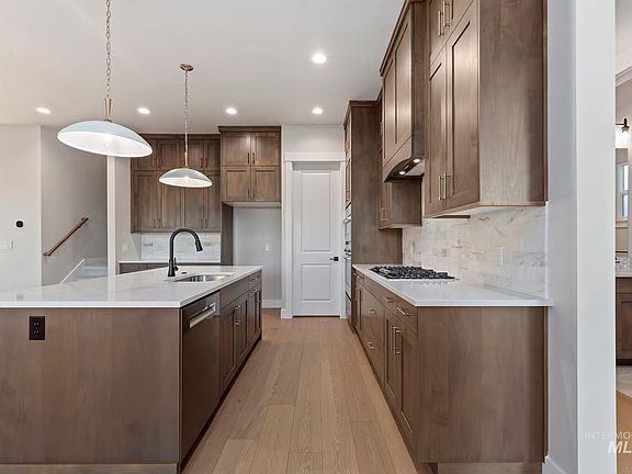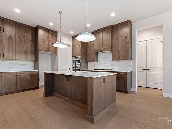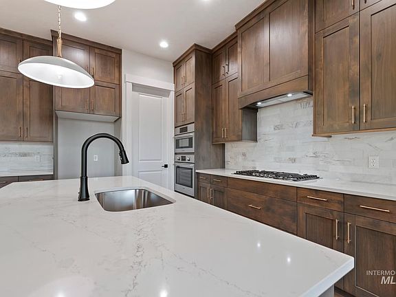 Welcome home to Tresidio's Riviera Bonus plan! This expansive home features 4 bedrooms downstairs, & a massive bonus upstairs, perfect for a media room, pool table, play room, gym - the possibilities are endless! On the main level, you'll enjoy entertaining in your chef's kitchen, complete with Bosch appliances, rich wood cabinetry up to the ceiling, & beautiful marbled quartz countertops. Open to the kitchen, the great room is big enough for everyone, & features a striking center fireplace with built in cabinetry, & Tresidio's signature tray ceiling with beams. Your primary retreat is tucked behind the great room, & boasts a spa-like ensuite drenched in cream tile & black hardware for a modern, resort vibe. This beautiful home features fine finishes all throughout, from the soaring 10' ceilings & 8' doors, to the mixed-metal lighting, to a color drenched, moody powder room, to tile & quartz in all bathrooms and laundry, you'll be so impressed! Nestled in peaceful Oakwood Estates in Meridian.
