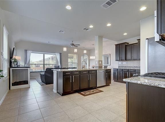 - Kitchen: Breakfast Bar, Open to Family Room, Center Island, Granite/Marble Counters