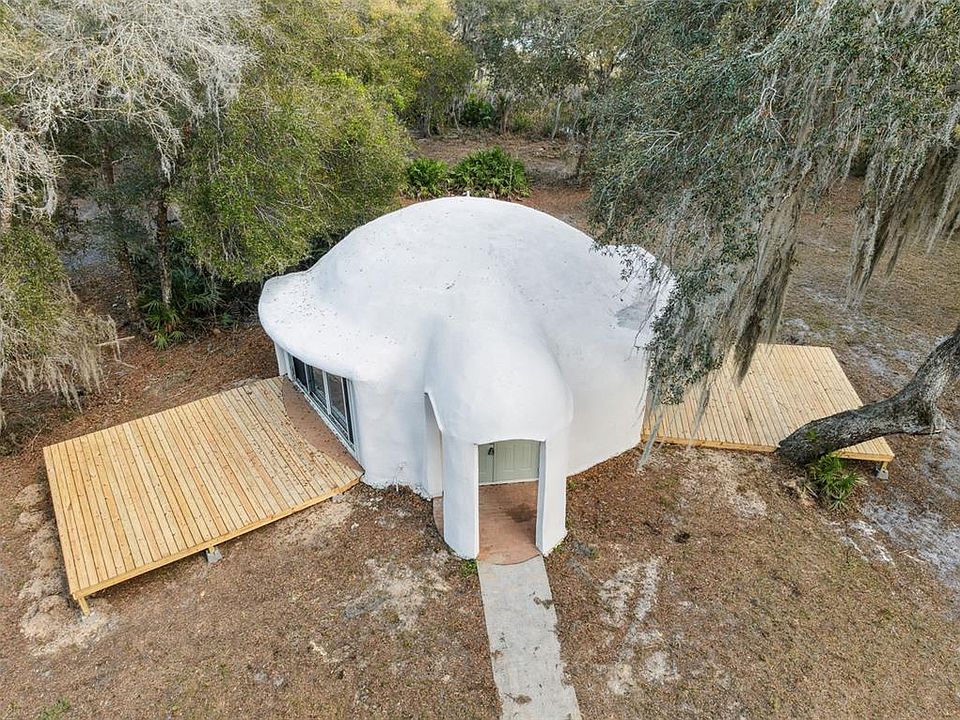Waterfront Concrete Dome Home – A Hidden Gem on the Tsala Apopka Chain of Lakes! This unique, one-bedroom, one-bath home with a loft is the perfect waterfront escape! Built in 2010 and fully updated in 2025, it’s move-in ready and full of charm. With breathtaking views from nearly every room and oversized sliding glass doors opening to decks on both sides, you'll love the open, airy feel! There is a private dock located on the property for you to enjoy nature, fishing, and watching the boats go by. Whether you're looking for a weekend retreat, a full-time home, or a possible rental opportunity, this place has endless possibilities! No HOA or CDD fees. Bring your airboats, kayaks, canoes, and fishing poles and enjoy the best of waterfront living. The home is Flood Zone X, with part of the land classified as AE, per the county. Hurricane shutters completely cover both sliding glass doors. 7570 & 7575 E Ringer are both included in the sale!