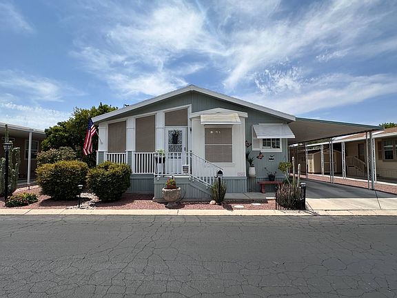 Beautifully Updated 2005 Home with Ideal East-Facing Light and Modern Touches This freshly painted 2005 popular floor plan offers a bright and welcoming atmosphere, with an east-facing deck that captures perfect morning light. Enjoy meals in the charming breakfast nook, or entertain in the open living space adorned with custom light fixtures and stylish finishes throughout. The home features dual-pane windows, shade screens, and security doors for year-round comfort and peace of mind. The carport adds convenience, while the gorgeous mature landscaping provides a serene and private outdoor setting. The spacious primary bedroom includes an en-suite bathroom with a skylight, dual vanities, and a generous walk-in closet. The roof is only one year old, and all stainless steel appliances are included-making this move-in ready home a standout. Don't miss the chance to own this beautifully maintained property with thoughtful upgrades and move in ready. Shed is unitized and off carport. Call today for a showing!