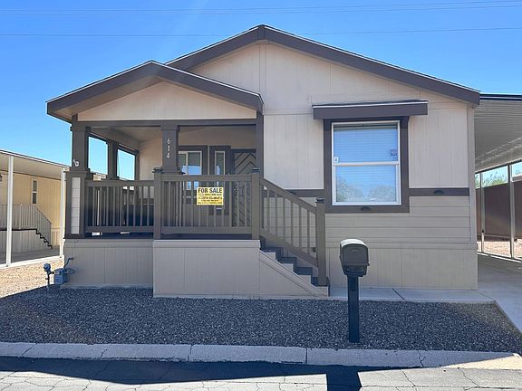This beautifully maintained 2019 Cavco manufactured home is situated on a desirable perimeter lot directly across from the sparkling community pool. Enjoy breathtaking Catalina Mountain views from your expansive 10x12 raised Trex deck, perfect for relaxing or entertaining. Key Features: No Sales Tax - Compare to new home sales and save thousands! North/South Exposure for optimal light and energy efficiency Upgraded Vinyl Laminate Flooring Granite Counters & Backsplash in the kitchen Granite Foyer Entry Cabinet with counter space High-End Upgraded Appliances included Updated Fixtures in both kitchen and bath Covered Carport with sunshades Spacious 9x11 Unitized Shed for extra storage This home is move-in ready and offers massive savings compared to new builds, with upgraded finishes already in place. Don't miss this opportunity to live in a beautifully upgraded home with incredible views and unmatched value!