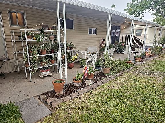 Outdoor Living: Relax on the large, inviting porch. The covered carport provides shade for your vehicle, and two included storage sheds give you plenty of room for tools and hobbies.
