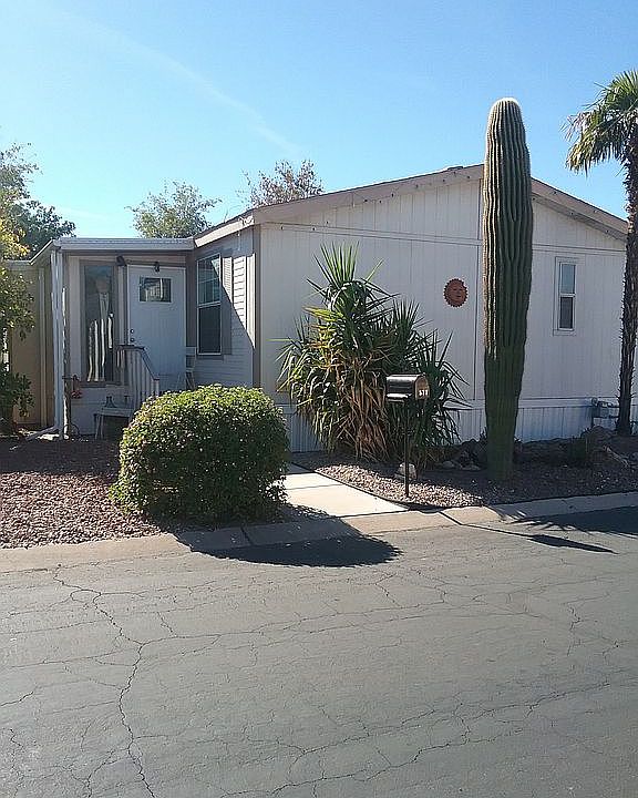 FOR SALE BY OWNER ONLY! SAVE $$$$!!! 55+ Community only. Let's talk! Set up a day/time to view...you will be glad you did. You will be able to afford new flooring, painters, etc., if you want. Doublewide with a sunroom on the south side is now empty, and a garage/workshop on the northside. Some furnishings can stay. Tons of storage inside as well. Kitchen has a double pantry, and ALL bedrooms have custom walk-in closets! Front yard is AZ plantings. South side has one 25 ft navel orange trees (trimmed back now). Back has a pink, violet tree and a red desert rose. Cabinets in the kitchen and both bathrooms are 6 yrs. new. HVAC, cold and warm air depending on the season. Let me know as most furniture can stay. Metal window awnings on South and West facing bedrooms. Garbage disposal in the kitchen. Washer and dryer convey. Two skylights. Ring camera at front door. Large dark wood Amorie with Vizio large flat screen tv and Vizio sound bar convey if requested. Three ceiling fans. Ring camera at front door. Very large UPDATED kitchen with newer cabinets. Pet free and smoke free home. Must add that workshop is being emptied. There is room for a dishwasher installation in your choice of two places. CALL 520 686-1480 AND LEAVE A MESSAGE FOR ME PLEASE! E-mail me if you prefer: thompsongayle@gmail.com