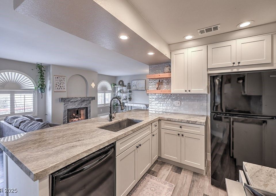 Make this first-floor condo within the gated community of Raintree in the Spring Valley area your home sweet home! Unit #142 is 1,023 square feet with Two Bedrooms w/en suite! This unit features a Renovated Kitchen w/Quartz Countertops and newer Cabinets along with Laminate Flooring throughout, Shutters, Fireplace, Covered Patio, and newer A/C unit! Washer, Dryer, Fridge, and Kitchen Water Filtration System Included! Other amenities include; Community Pool, Community Spa, and a Covered Parking Space assigned to the unit! Great proximity to both the 215 for access to the outer edges of town and also the I-15 for great connectivity to the Las Vegas Strip! Get it while you can!