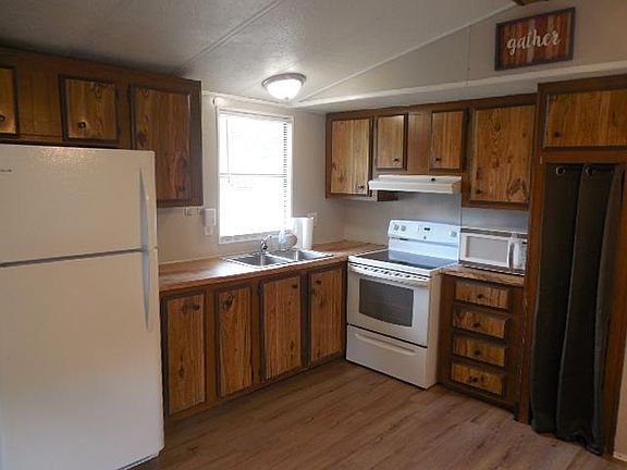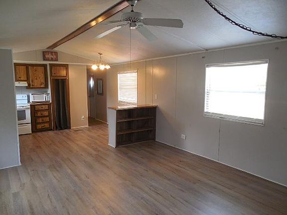 Country living. Welcome to this 2 bedroom, 2 bath mobile home sitting on 1/2 acre. Split bedroom plan, eat in kitchen, inside laundry. Past few years there has been vinyl planking installed thru-out the home, updated fans and light fixtures, newer refrigerator, glass top range. Yard is partially fenced with decks in the front and back. Storage shed for your lawn equipment etc. There are no pets allowed. Requires 1st, last and security. Applications are $50.00 per person aged 18 and older.