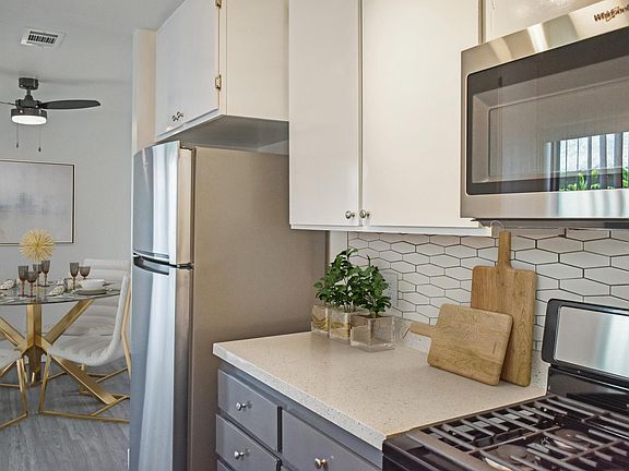 Enclosed spacious patioAll stainless steel appliancesTwo tone kitchen cabinetsWasher and dryerWalk-in closets