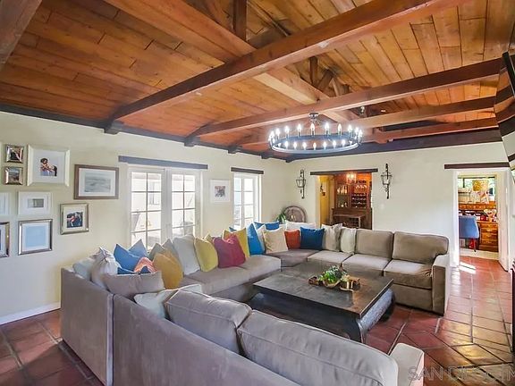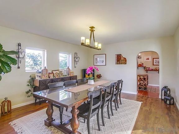 Incredible property! Once you enter the Spanish-style compound with its main gorgeous 4 bed 3 bath home and the 2 bed 1 bath second unit upstairs - you will be amazed at the configuration of space. The downstairs palatial home, with high wood beamed ceilings and classic Spanish details, is enhanced by the central interior Patio w/ entrances from bedrooms, living room etc. The swimming pool and jacuzzi are a separate outdoor joy, as is the green grassy cozy backyard. Walk to shops and restaurants and enjoy this unique compound - live in one, rent the other, comfortable living for your large extended family or a great moneymaker for an investor! (solar panels are leased)