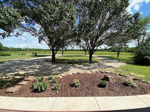 Nestled on 9.8 peaceful acres, this well maintained rural property offers space, updates and beautiful views in every direction. With 5 bedrooms and 2 full baths, there's room for everyone, plus a spacious 2 car garage and outbuilding for additional storage or hobbies. Recent exterior updates include new paint, siding, windows, trim, gutters and a concrete approach to the garage. Enjoy morning coffee or quiet evenings on the newer covered front porch or the patio out back while watching the abundant wildlife. Inside the home features luxury vinyl flooring the basement, two hot water heaters, a whole house attic fan and a newer HVAC system(2020). The electrical panel has been updated and the wall anchors in the basement come with a transferable warranty for peace of mind. The kitchen includes all appliances except the refrigerator. The property is serviced by rural water, private well and lagoon. The pasture at the back has a mowed path all the way around for recreation or could be used for horses and hayed. If your looking for quiet country living with modern updated and wide-open skies, this is the one!
