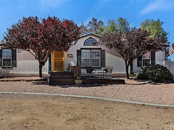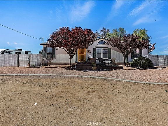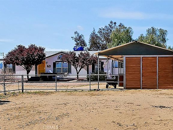 Single story manufactured home that is on a permanent foundation! Over 2 acres of all flat useable land, completely fenced in and on a corner lot. Home features 3 bedrooms. 2 bathrooms. Spacious living and dining room. Kitchen with breakfast bar, separate laundry room. Large master bedroom with large walk-in closet. Master bathroom has a separate walk-in shower and tub. Deck in backyard that is great for entertaining! Newer roof installed in August 2023 and newer septic tank installed September 2022. Energy efficient Swap cooler that significantly reduces energy cost. VERY HARD TO FIND, 4 Stall shed row barn with turn outs. Separate fenced in area which can be used for dogs or other livestock. Large shed great for storage. RV Parking access. Plenty of room to add garage/ workshop or future ADU. Close to main shopping center that features a stater brothers & Walmart. Close to the 395. Affordable Southern California living with NO HOA & LOW TAXES. Do not miss out on this opportunity to own your home on over 2 acres.