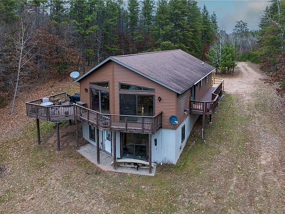 Secluded north woods retreat on a 19.98 parcel of woodland, on a quiet, sparkling clean, private fishing lake (no public access) with a breathtaking view from the gentle hilltop overlooking Little Casey Lake through 8? double patio doors. The designer decks offer even more panoramas. This 4 bedroom, 3 bath gem offers peace and quiet, plenty of room, shoreline for docks and boats, and kayaks, along with space for trails and hunting. The efficient layout is perfect for families and gatherings or for individuals who want to get away from it all. The downstairs living area is great for guests or could easily become a small apartment for grandma or grandson. Conveniently located 8 miles northwest of the fine amenities Spooner offers. Don't miss this opportunity to own this unique property.