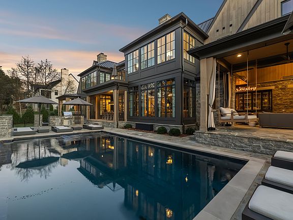 This extraordinary residence is a showcase of architectural brilliance and refined elegance. From its commanding exterior presence to its meticulously curated interiors, every detail has been designed to impress. Step into a private resort experience with an infinity-edge pool that mirrors the sunset sky, creating a breathtaking backdrop for relaxation and entertainment. Multiple terraces and lounging areas invite you to unwind, while a custom stone firepit and an outdoor kitchen with built-in grill make alfresco dining and gatherings unforgettable.The seamless integration of indoor and outdoor spaces ensures that every moment is elevated by panoramic views and impeccable design. Inside, soaring ceilings and walls of glass flood the home with natural light, highlighting the craftsmanship and luxurious finishes throughout. The grand living room features a dramatic stone fireplace and an open layout perfect for entertaining. The dining room, framed by floor-to-ceiling windows, offers an intimate yet airy setting for elegant meals. The chef’s kitchen is a masterpiece, boasting dual waterfall islands in striking marble, professional-grade appliances, and custom cabinetry. Just steps away, a bespoke bar area steals the show with its mirrored shelving, brass accents, and extensive wine storage. A walk-up window connects the bar to the outdoor lounge, creating a unique experience for serving guests indoors and out. The primary suite is a sanctuary of comfort and style, featuring a vaulted ceiling with exposed beams, a stone fireplace, and custom built-ins. The spa-inspired bathroom offers dual vanities, a freestanding soaking tub, and gold fixtures that exude elegance. Additional sitting rooms and bonus spaces provide versatility for relaxation or entertainment, each designed with rich textures and modern sophistication. From the infinity pool to the whiskey lounge, this estate is more than a home—it’s a statement of luxury living at its highest level.