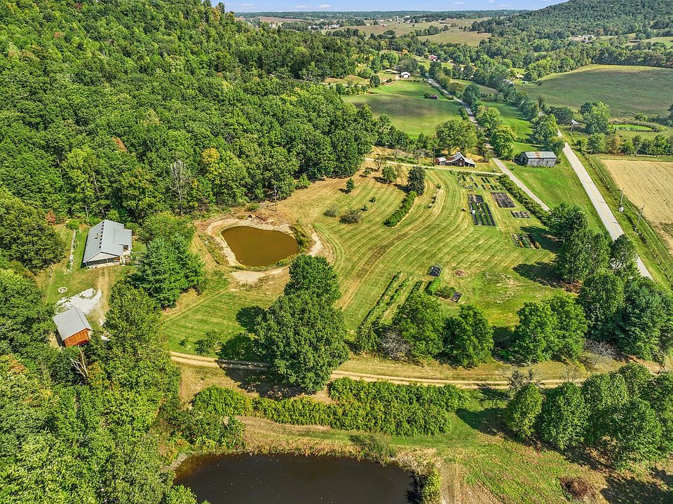 Homesteaders' Dream! Wonderful Organic-Styled Berry Farm with 14 acres of fruit/nut trees, medical plants, and no-till prepped garden rows. There is a 4 BR/2BA Home and A Passive Solar Home that can sleep 4 with an attached Greenhouse. The spring fed fishing pond is surrounded by rows of blueberries that yielded 600 pounds of berries in 2023. There is also an irrigation pond for the raspberries, grapes, and elderberries. Check out the four-acre fenced pasture ideal for a third homesite or for your livestock. New Fencing Around the Entire Perimeter. A gravity fed Irrigation System utilizes 100% rainwater from (3) 1,100  gallon storage tanks. A new, 3-bay Garage/Shed for your firewood, cars and farm toys and two spacious chicken coups. The original homestead is used for storage with a fenced corral and shelter for 2 horses. One home has city water and the other has a cistern. Become self-sustaining in a beautiful rural setting!