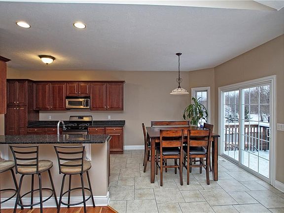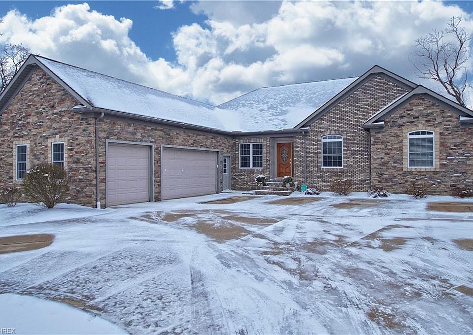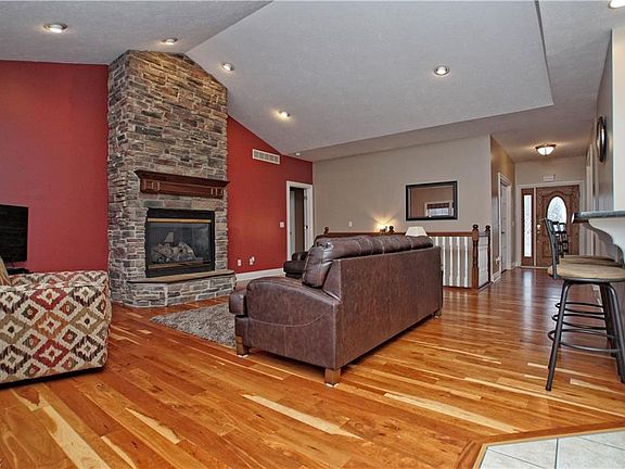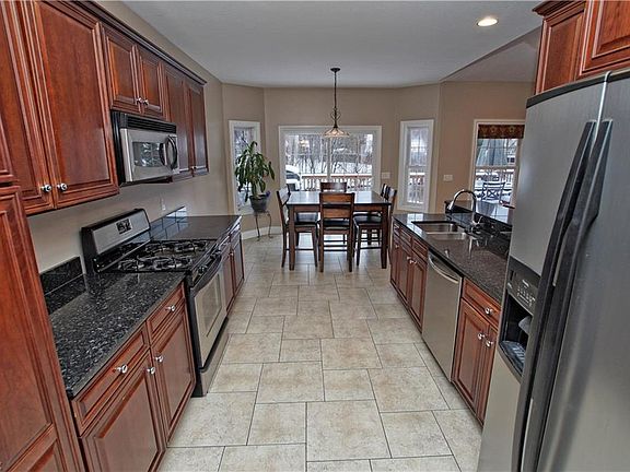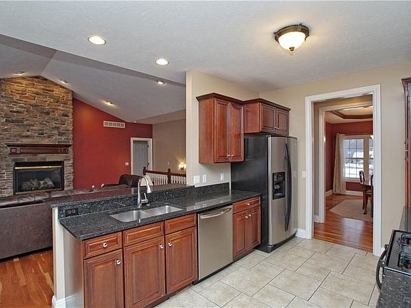 Welcome your guests to this gorgeous 4 bedroom, 4 bath Ranch featuring your own oasis for entertaining family and friends. The home features Brazlian cherry floors on the main level with vaulted ceiling and fireplace in the great room. Tray ceilings in the dining room and master bedroom add character and charm. Granite counters and ceramic floors are in the kitchen and master bath. The master opens to the expansive two tier back deck with sunken hot tub to enjoy views of the spring fed pond. The 1700 sq ft finished lower level features a large entertaining area with wet bar, gas log fire place, pool table and walk out to the stamped concrete patio. An exercise room and optional office are also on the lower level. Outside is your fully landscaped playground with a walkway from the patio down to the custom built tiki-bar with boat dock and sand beach on the pond. Imagine all the parties and relaxation this one of a kind layout will provide!There is also a fenced in back yard for pets or a children's play area. The attached three car heated garage offers a stairway to the lower level. Schedule your showing today for this custom built one of a kind paradise.