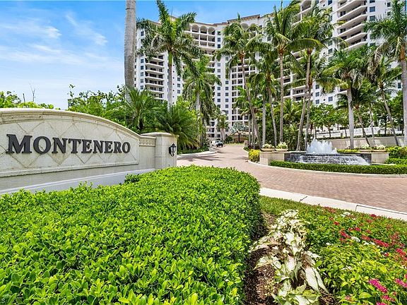 PRIME LOCATION! Located in one of the most desirable buildings within Pelican Bay, The Montenero, this 10th-floor "08" stack residence has been beautifully remodeled, offering 3400 sq.ft. under air; 4040 sq. ft. total area, marble floors, 9 ft. ceilings, 3 bedrooms, 3.5 baths, den/library, spacious living room, open kitchen, family room, and 2 large lanais. The 31-foot screened lanai has uninterrupted expansive Gulf and sunset views all year and upgraded metal electric shutters for storm protection. As you enter this residence, you immediately enjoy beautiful views from every room! The open living area has a comfortable upholstered couch, accompany chairs, and lovely art. The rectangular dining table seats 8. The well-equipped and updated kitchen has granite countertops and bar area, quality appliances, a round glass table and dining for 4, and an adjoining family room with a comfortable L-shaped couch, chairs, and TV. The primary suite features a king-size bed, sitting area, custom-designed closet, TV, spacious private bath with dual vanities, walk-in shower, and a soaking tub; easy access to the spacious screened lanai with comfortable seating. The 1st guest suite offers a king-size bed, matching end tables, dresser, walk-in closet, tv, ample natural light, private bath with a walk-in shower, and easy access to the open-air balcony with eastern views of the bay, and lush landscaping. The 2nd guest suite offers a queen-size bed, spacious closet, tv, and a private bath with a walk-in shower. No corridors to your front door - elevator opens into the residence foyer. Two deeded under-building parking spaces: A private garage for storage, and an open parking space are included. Montenero amenities include a movie theatre, sunny pool and hot tub area, 5 guest suites and 24-hour front desk attendant. Pelican Bay residents enjoy access to miles of sandy beaches, two beachfront restaurants, a staffed fitness center and two tennis pavilions. Pickleball is coming! The property is conveniently near Artis-Naples, Waterside Shops, Mercato Shops, and various dining establishments.