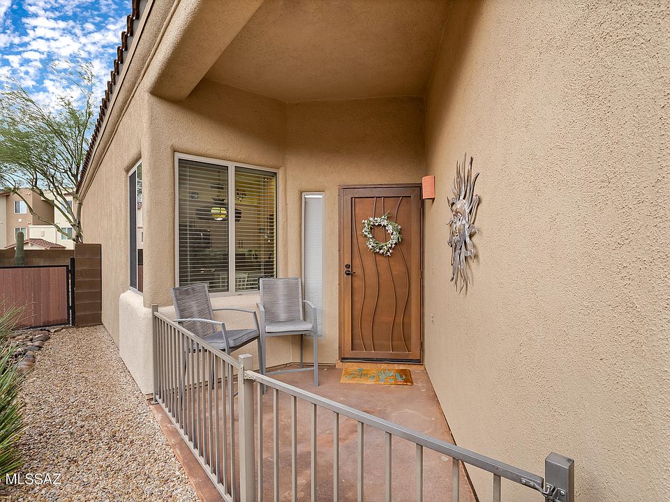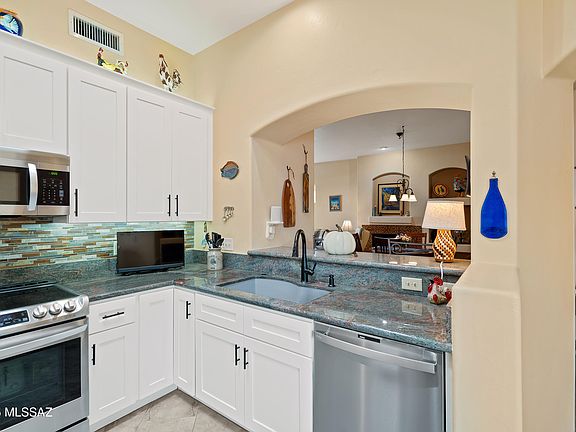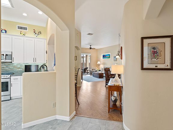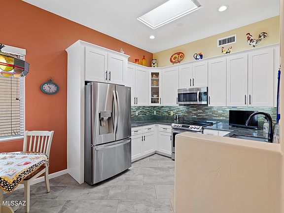 This charming AF Sterling home in gated Sierra Crest was built in 2002, and offers a spacious 1483 sq ft of living space featuring three bedrooms and 2 baths. The primary bath has been beautifully updated to include a luxurious walk-in shower and elegant stone countertops, providing a modern flair. The kitchen is equally impressive with stylish granite counters, under cabinet lighting, and sleek stainless steel appliances. The layout of the home follows a split bedroom plan, offering privacy and comfort for all occupants. This home is located in a convenient area of Marana, within walking distance to Rattlesnake Ridge elementary school and close to shopping and restaurants. With its desirable features and convenient location, this home is a perfect blend of style and functionality.