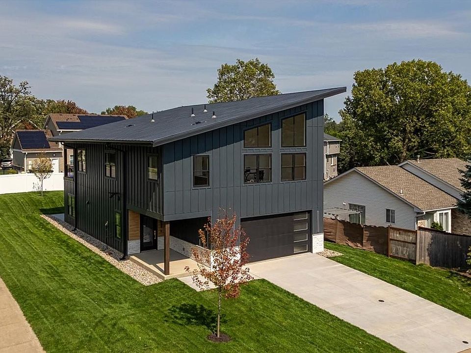 Enjoy a striking exterior with James Hardie siding, Chamclad wood-look accents, and a covered upper-level porch. Interior features include quartz countertops, high-end custom cabinetry, tiled bathroom floors and showers, built-in closets, and laundry room built-ins.