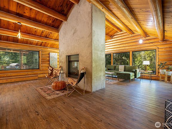 Exquisite like new log cabin in the much sought after Glacier Springs. Cedar logs that were taken from Church mountain have been restored to their natural beauty. New metal roof, windows, & Corten steel siding. A floor to ceiling fireplace, vaulted ceilings and large picture windows grace the living & dining room. Gourmet kitchen features eating bar, breakfast nook, microwave drawer, & Bosch fridge and dishwasher. Main floor office. Two primary suites. Lower level primary suite has it's own entrance, mini fridge, microwave & coffee bar. Lower level is spacious with large rec room and storage galore. Enjoy the beauty of the outdoors from the deck & spacious patio.Includes an extra stand alone lot.Close to trails, river & Mt Baker Ski Area