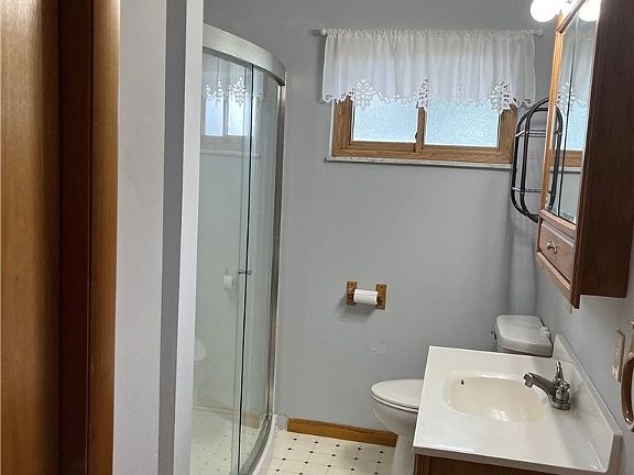 Out in the country with a view of the corn fields. 2 Barns for storage or animals. The home features many updates oak kitchen cabinets with built in pantry with slide out shelves, Micro wave ceramic tile floor and appliances. The family room has separate heating and air. The rest of the house has central and electric baseboard heating. There is hardwood floors under the bedroom hallway and living room carpet.