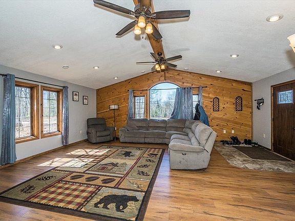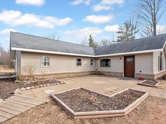 Fantastic Modern Ranch Home in Lake Nebagamon! Sitting on almost 10 acres of land is this 2005 built 5 Bdrm/2 Ba home. Featuring a huge eat-in custom kitchen with tons of Maple cabinetry, a primary bdrm with 3 closets and an en suite with a jetted tub and walk-in shower, in floor heat thoughout the home, a unique open concept design, and all the bedrooms and space you could want! Outside, there is a (36 X 36) 2 stall detached garage, an outside wood boiler that provides in-floor heat for the home and garage, a huge yard! All appliances are included in the sale, and as an added bonus, this property has it's own drilled well and private septic. This is a fantastic modern home on a nice amount of private land!