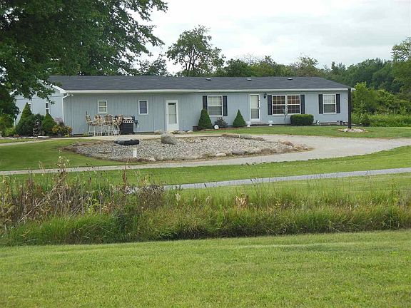 "For the larger family" come and enjoy, clean country living in this 4 bedroom, 2 bath home that includes an 12' x 18' living room and a 17' x 27' family room. Split bedrooms (2 on each end of the home) separate den, open kitchen and dining area, separate laundry area, vaulted ceilings, over 2,100 sq. ft. of living area. LP gas heat, central air, brand new roof and more. 26' x 32' pole barn w/concrete floor and 10' overhead door.