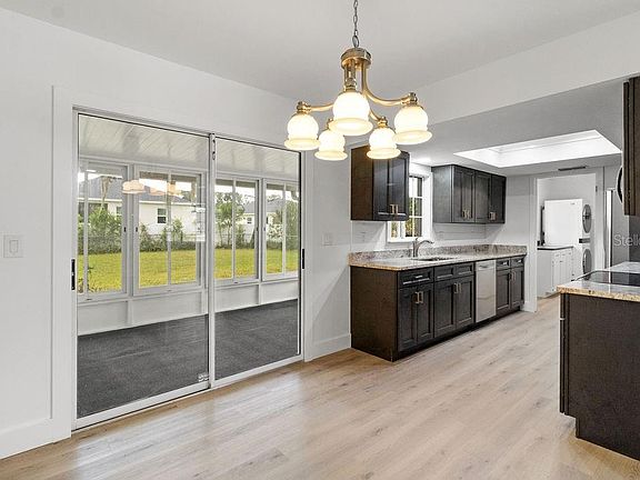 This move-in ready residence showcases a complete renovation and is awaiting for you to add your personal touches. Enjoy peace of mind with a new roof (2025), new A/C (2025), new water heater (2025), and new appliances (2025). The kitchen features brand-new solid wood cabinetry with granite countertops, while both bathrooms have new vanities, fixtures, and modern finishes. The entire home is updated with luxury vinyl plank flooring, new blinds, and fresh paint throughout. The Florida room has new indoor/outdoor carpeting—perfect for relaxing year-round. The oversized one-car garage features a stained and flecked floor, and the fenced yard is shaded by mature oak trees creating a peaceful outdoor retreat. Located in the desirable guard-gated 55+ community of Palm Cay, with very low HOA fee for residents to fully enjoy amenities including a clubhouse, pool, and also space available for boat and RV parking.